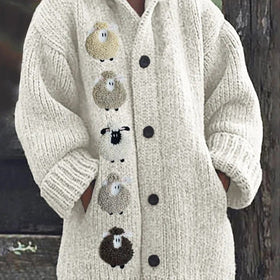 Dieser weiße Cardigan mit Kapuze und Knöpfen vereint Komfort und lustiges Design. Das niedliche Schafmotiv und der lockere Schnitt sorgen für entspannten Tragekomfort und einen Hauch Verspieltheit. Ideal für legere, stilvolle Outfits.