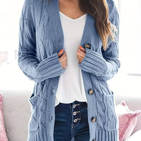 Verleihen Sie Ihrer Garderobe mit diesem stilvollen Cardigan einen Hauch von Raffinesse. Mit einem zeitlosen Knopfverschluss-Design ist er perfekt für legere sowie elegante Anlässe. Einfach zu tragen und vielseitig, sorgt er dafür, dass Sie bequem und gleichzeitig mühelos schick aussehen.