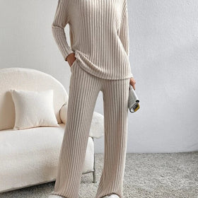 Dieses Strickset (Hose & Pullover) vereint Vielseitigkeit und Stil für die aktuelle Saison. Ob zuhause oder unterwegs: Lucia verbindet Eleganz und Komfort.