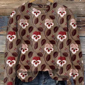Damen Sweatshirt mit Blumenblatt-Print und Stickerei von Fudus