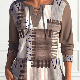 Damen-Sweatshirt mit geometrischem Muster und Schnürung von Fudus