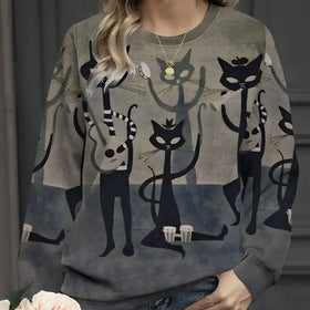 Damen-Sweatshirt mit Katzenmotiv von Fudus