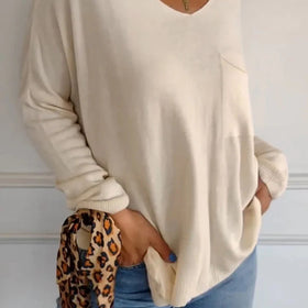 Damen T-Shirt mit langen Ärmeln, Rundhals, unifarben, lässig, mit Taschen