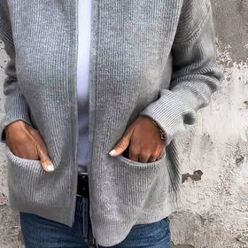 Die Halle-Jacke mit Reißverschluss verbindet die Gemütlichkeit von Strickwaren mit der Eleganz eines Reißverschlussdesigns. Aus weicher, dehnbaren Mischung gefertigt, bietet sie Komfort und Struktur – ideal als Überzieher. Der hohe Kragen und die eng anliegenden Ärmelbündchen verleihen Raffinesse. Ob Brunch oder Besorgungen – der Reißverschluss ermöglicht einfaches Anziehen, die Strickstruktur angenehme Wärme.