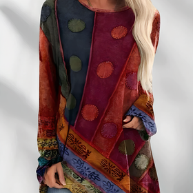 Diese Bluse mit ethnischem Print bringt mit ihrer lockeren Passform und auffälligen Mustern mühelosen Charme in Ihre Garderobe. Vielseitig einsetzbar – perfekt für Arbeit, Reisen oder Freizeit – verleiht sie jedem Look einen Hauch böhmischer Eleganz. Der atmungsaktive Stoff sorgt für ganztägigen Komfort, der einzigartige Druck setzt ein gewagtes Modestatement.