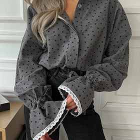 Damenbluse mit Herzmuster und Spitzenärmeln von Fudus