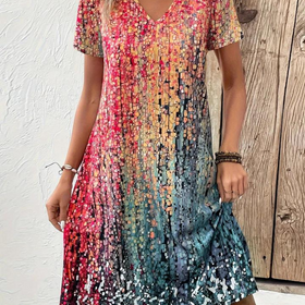 Damenkleid mit V-Ausschnitt und Mosaikmuster