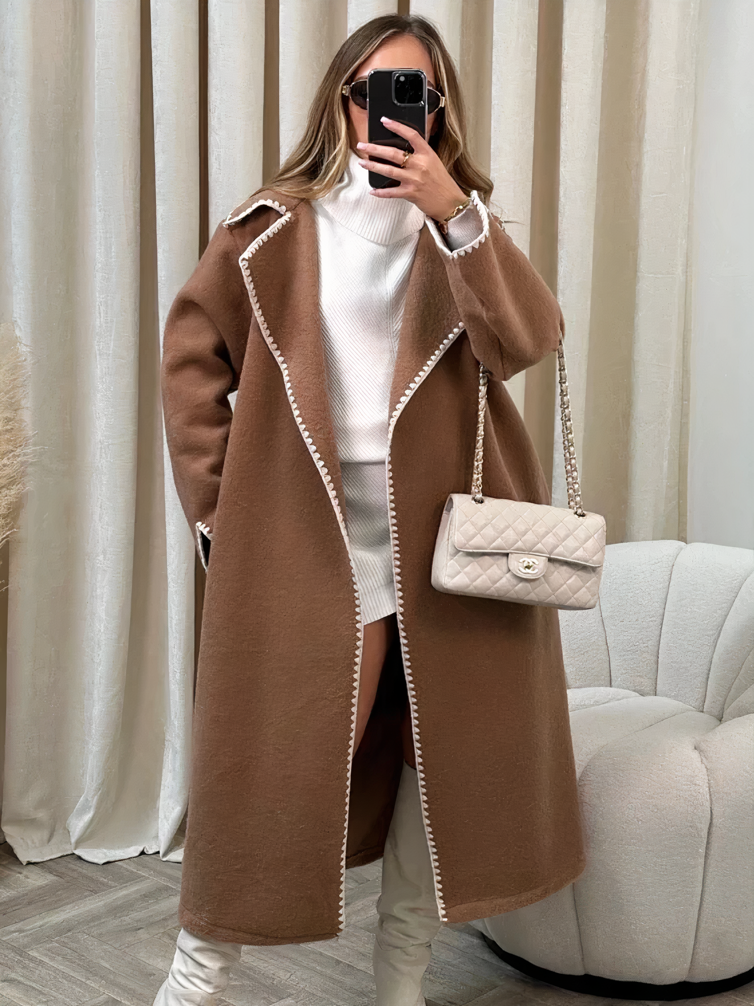 Setzen Sie ein modisches Statement mit dem GRACIE - Langer lockerer Damenmantel mit Revers. Bleiben Sie warm, bequem und stilvoll.
