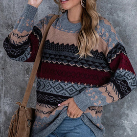 Dieser Vintage-Pullover vereint klassische Retro-Streifen mit moderner, entspannter Passform. Er bietet diverse Farben und Tribal-Muster für einen nostalgischen Look. Perfekt für Casual-Outfits, kombiniert er Komfort mit Stil durch seinen lockeren Schnitt und runden Ausschnitt.