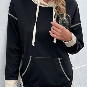 Damensweater mit Kapuze, Kordelzug und tiefem Armausschnitt von Fudus