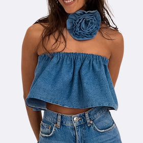 Denim Bandeau Top mit Blumen-Kropfband von Fudus