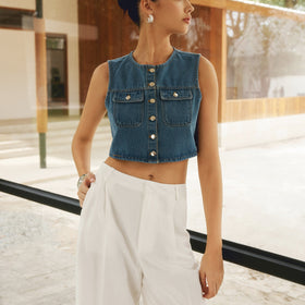Denim Oberteil mit Knopfleiste und zwei Taschen von Fudus