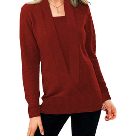 Denny Knit Solid Deep V-Neck Two-Piece Pullover Jacket