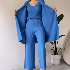 Genießen Sie elegante Schlichtheit für die kühlen Jahreszeiten mit unserem stilvollen und schlichten dreiteiligen Set.