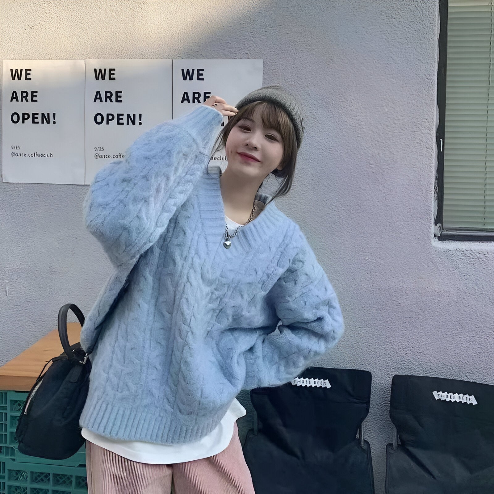 Ein stylischer, oversized Pullover für kühle Herbsttage – wie eine warme Umarmung. Vielseitig, er hebt dein Outfit hervor und hält dich gemütlich warm – ein unverzichtbares Winterstück.