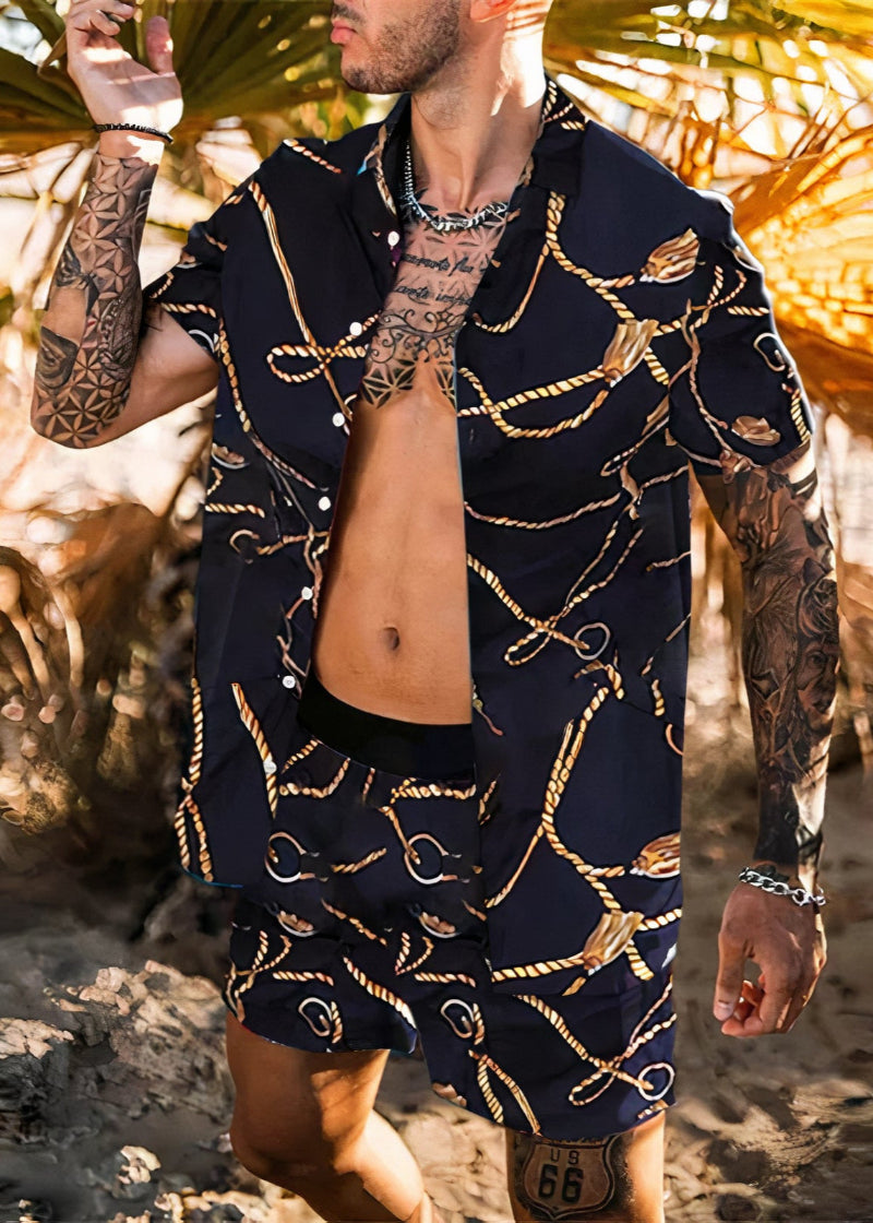 Dieses perfekte Sommerset für Männer kombiniert stilvolles Design mit höchstem Tragekomfort. Die leichten, atmungsaktiven Stoffe halten dich auch an heißen Tagen angenehm kühl und sorgen für ein entspanntes Tragegefühl. Ob am Strand, in der Stadt oder bei sommerlichen Events – dieses Set bietet eine mühelose Kombination aus Lässigkeit und Eleganz. Perfekt für alle, die den Sommer in vollen Zügen genießen möchten.