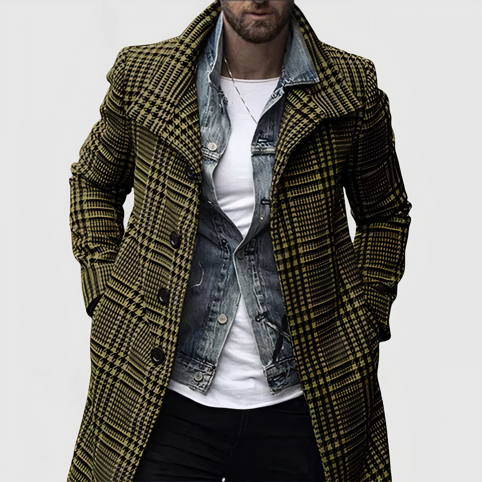 Stilvoll und vielseitig: perfekt für Arbeit, Freizeit und Alltag. Die neutralen Farben lassen sich vielseitig kombinieren. Der DYLAN - Kariert Lapel Mantel ist eine Investition in Stil, Komfort und Langlebigkeit – purer Stil.