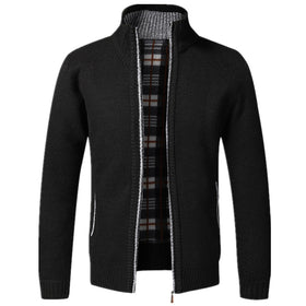 Das gestrickte Woll-Außenmaterial schützt vor Kälte, bleibt aber bequem. Das Flanellfutter hält die Körperwärme. Der Reißverschluss am Kragen schützt vor Wind.
