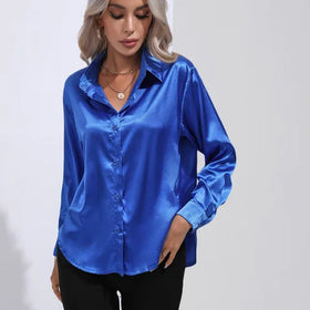 Edle, weit geschnittene Satinbluse mit langen Ärmeln von Fudus