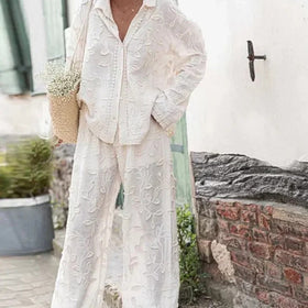 Elegantes Stickerei-Hosen-Set mit Langarm-Bluse