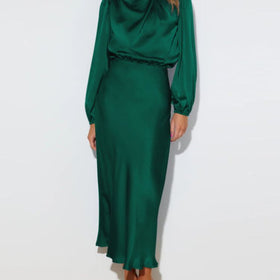 Eleganz ausstrahlen: Das langärmelige Satinkleid Jannik