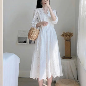 Dieses atemberaubende, weiße, lange Kleid besticht durch Stickerei am V-Ausschnitt, Spitzendetails und konkave Muster. Aus hochwertigen Kunstfasern gefertigt, ist dieses oversized Maxikleid perfekt für modebewusste Frauen. Der Spitzenstoff und das A-Linien-Profil schmeicheln jeder Figur und eignen sich für diverse Anlässe – vom Strand bis zur Sommerveranstaltung. Werten Sie Ihre Garderobe auf!