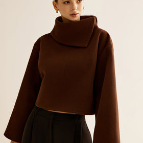 Einfaches Tweed-Oberteil mit Rollkragen von Fudus
