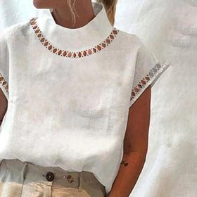 Lassen Sie sich von unserem exquisiten weißen Kurzarm-Top, entworfen von Mia Wagner, verzaubern. Dieses Top vereint Eleganz und modernen Stil und wird ein Lieblingsstück Ihrer Frühlings- und Sommergarderobe.