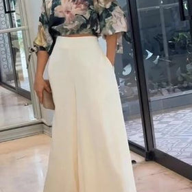 Elegante Bluse und luxuriöse weiße Schlaghose: 2-teiliges Set "Carol"