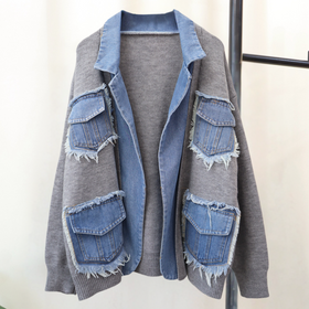Elegante Damen-Strickjacke mit modernen Denim-Details