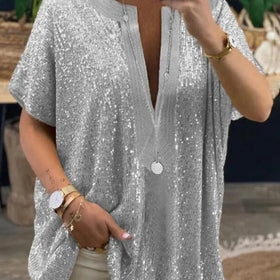 Elegante Damenbluse mit Pailletten und V-Ausschnitt von Fudus