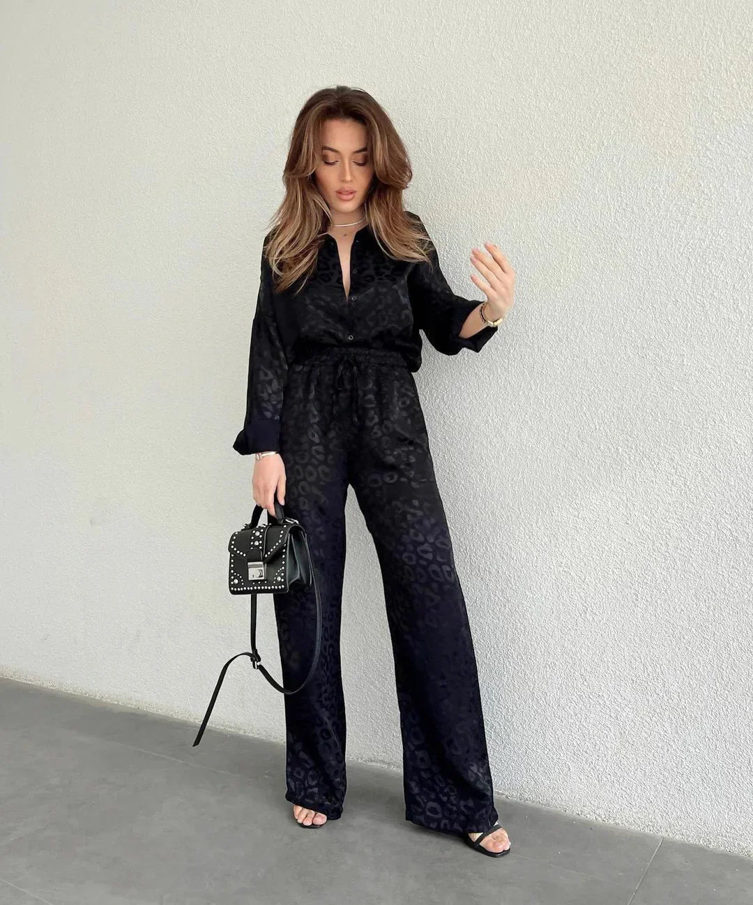 Elegante Hose mit weitem Bein und dazu passende einreihige Bluse – Beatrice