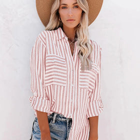 Entdecken Sie zeitlose Eleganz mit unserer Larissa – Eleganten Langarm Streifenbluse. Perfekt für Frauen, die ihren Look stilvoll aufwerten möchten. Der tiefe V-Ausschnitt und das lockere Design mit aufrollbaren Ärmeln verleihen einen modernen Touch, während klassische Streifen einen stilvollen Akzent setzen. Ideal für Büro, Freizeit oder formelle Anlässe – ein vielseitiges Must-Have.