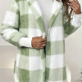 Elegante Luscara Kapuzenjacke mit Karomuster, offenem Vorderteil und langen, flauschigen Ärmeln