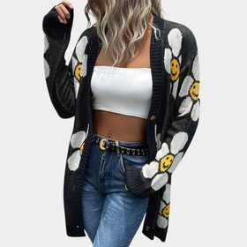 Elegante Strickjacke mit Blumenmuster...