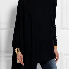 Dieses elegante, moderne, asymmetrische Oberteil bietet Komfort und Stil. Der einzigartige Schnitt und auffällige Schulterknöpfe eignen sich für legere und formelle Anlässe. Hoher Kragen und weiter Schnitt kreieren einen schicken Look. Kombinieren Sie es mit Jeans oder eleganten Hosen.