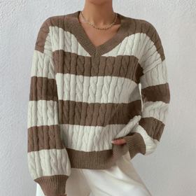 Eleganter Damenpullover mit V-Ausschnitt und Streifen von Yamina