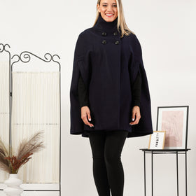 Der Schwarze elegante Cape-Mantel vereint Eleganz und Funktionalität. Seine einzigartige Cape-Form bietet einen außergewöhnlichen Look für besondere Anlässe oder den Alltag. Merkmale:
