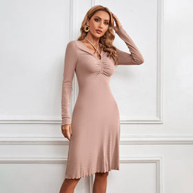 Elegantes A-Linien-Midikleid mit langen Ärmeln von Fudus
