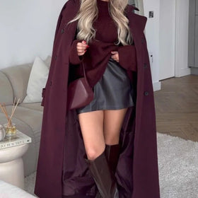 Liesel Eleganter Burgundy Langmantel – Zeitlose Raffinesse