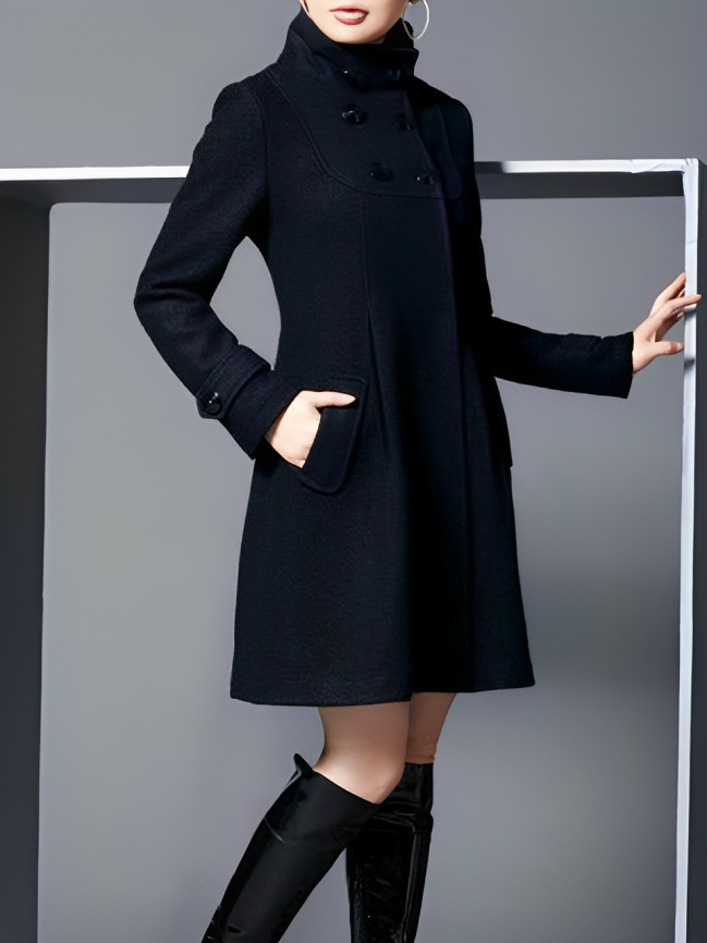 Der Mantel Cora mit Seitentaschen: Moderne Eleganz trifft praktischen Komfort. Ideal für Büro, Events oder Stadtbummel.
