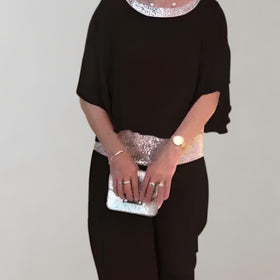 Das aus hochwertigen Materialien gefertigte Arlin Set besteht aus einem halbarmigen Glitzertop mit Rundhalsausschnitt und einer Hose mit weitem Bein. Das sorgfältige Design sorgt dafür, dass Sie mühelos schick aussehen, egal ob Sie einen legeren Ausflug oder eine formellere Veranstaltung besuchen.