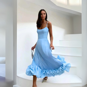 Elegantes, bequemes gerafftes Midi-Kleid für Damen.