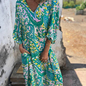 Elegantes Damenkleid mit Print, V-Ausschnitt, für Frühling und Sommer von Fudus