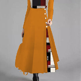 Maxi-Rock. Runder Halsausschnitt. Essentieller Stil, Pendlermode. Reguläre Ärmel. Zusammenstellung/Patchwork.
