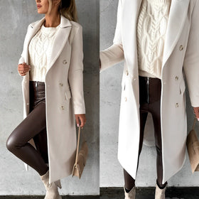 Elegantes, lang geschnittenes zweireihiges Wollmäntel Modell Gadie Bella