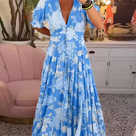 Elegantes langes Damenkleid Alina mit V-Ausschnitt