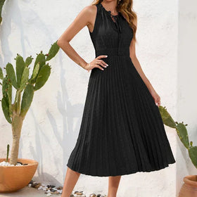 Elegantes schwarzes Irina-Plisseekleid mit Halterneck für besondere Anlässe