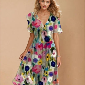 Elegantes V-Ausschnitt-Hochzeitsgastkleid Lena