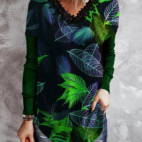 Elegantes V-Ausschnitt Langarm Raglan T-Shirt aus Spitze von Fudus